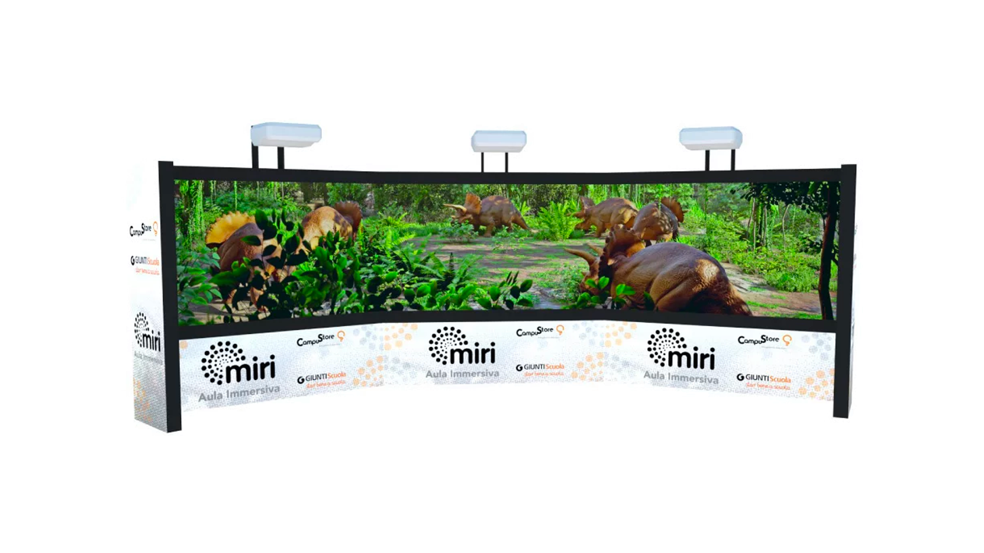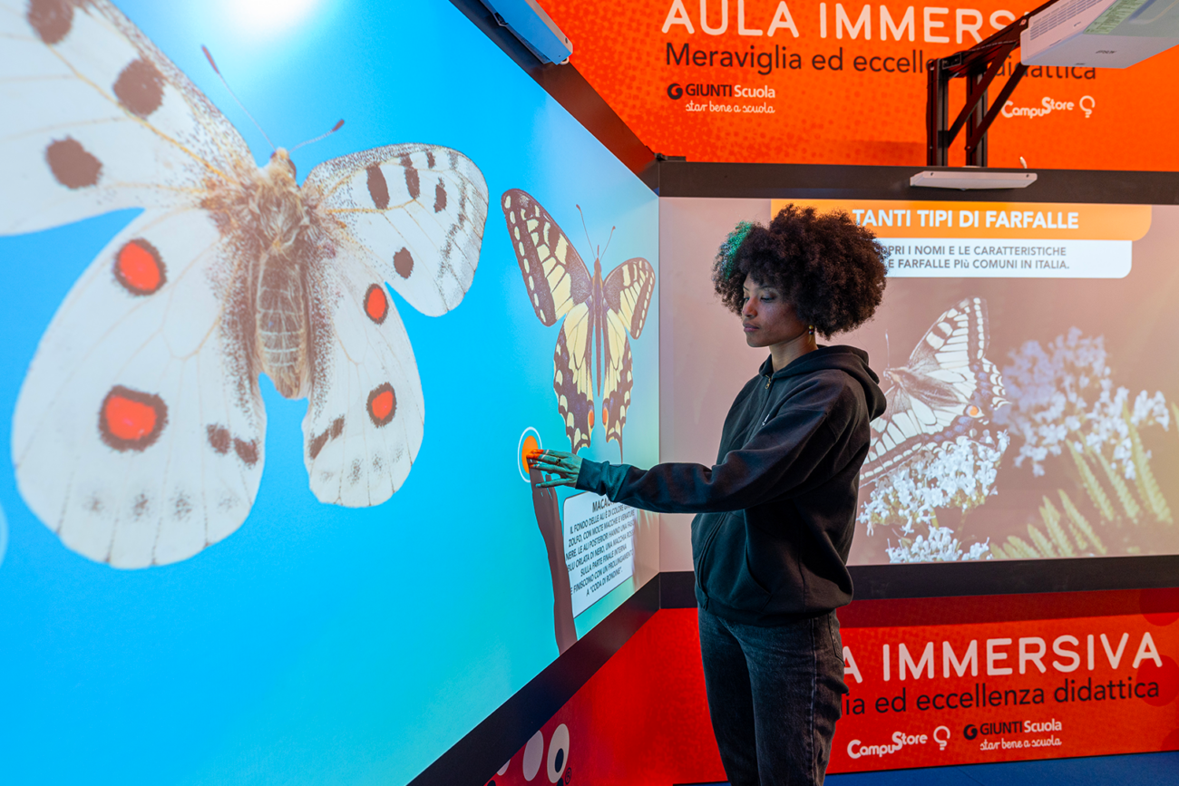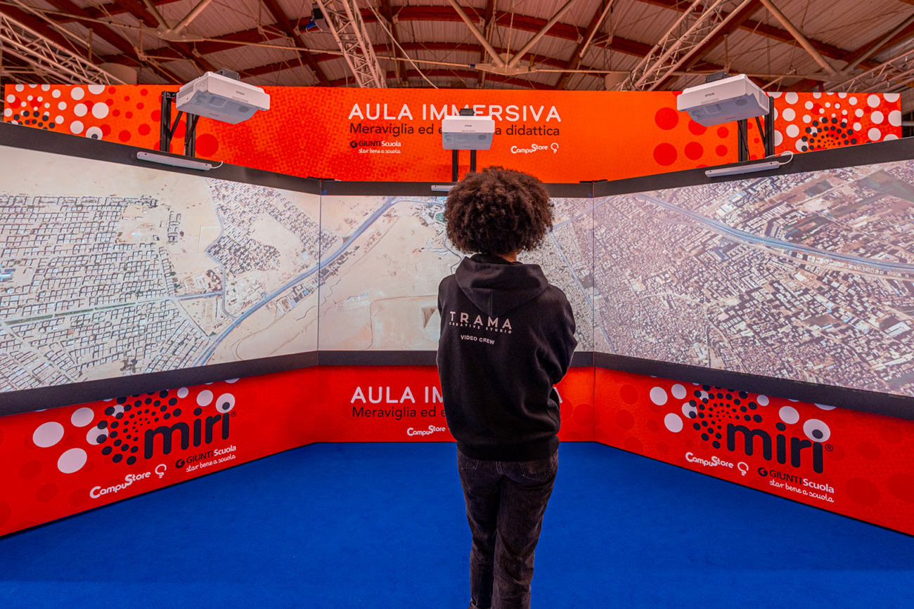 MIRI is an innovative learning space designed by TRAMA exclusively for Giunti Scuola and CampuStore. It transforms the classroom into an immersive and interactive environment where students actively participate in their education. With cutting-edge technology, MIRI allows students to explore time, space, and even the universe—all with a simple touch.