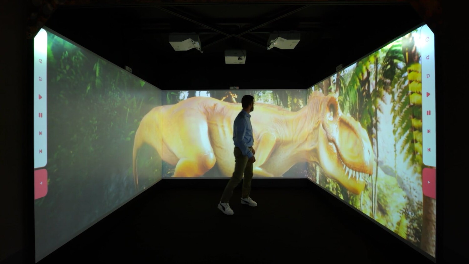 Projected by TRAMA in collaboration with CampuStore, MIRI features a three-wall setup with ultra-short-throw projectors and high-resolution laser technology—no headsets or extra devices are needed.